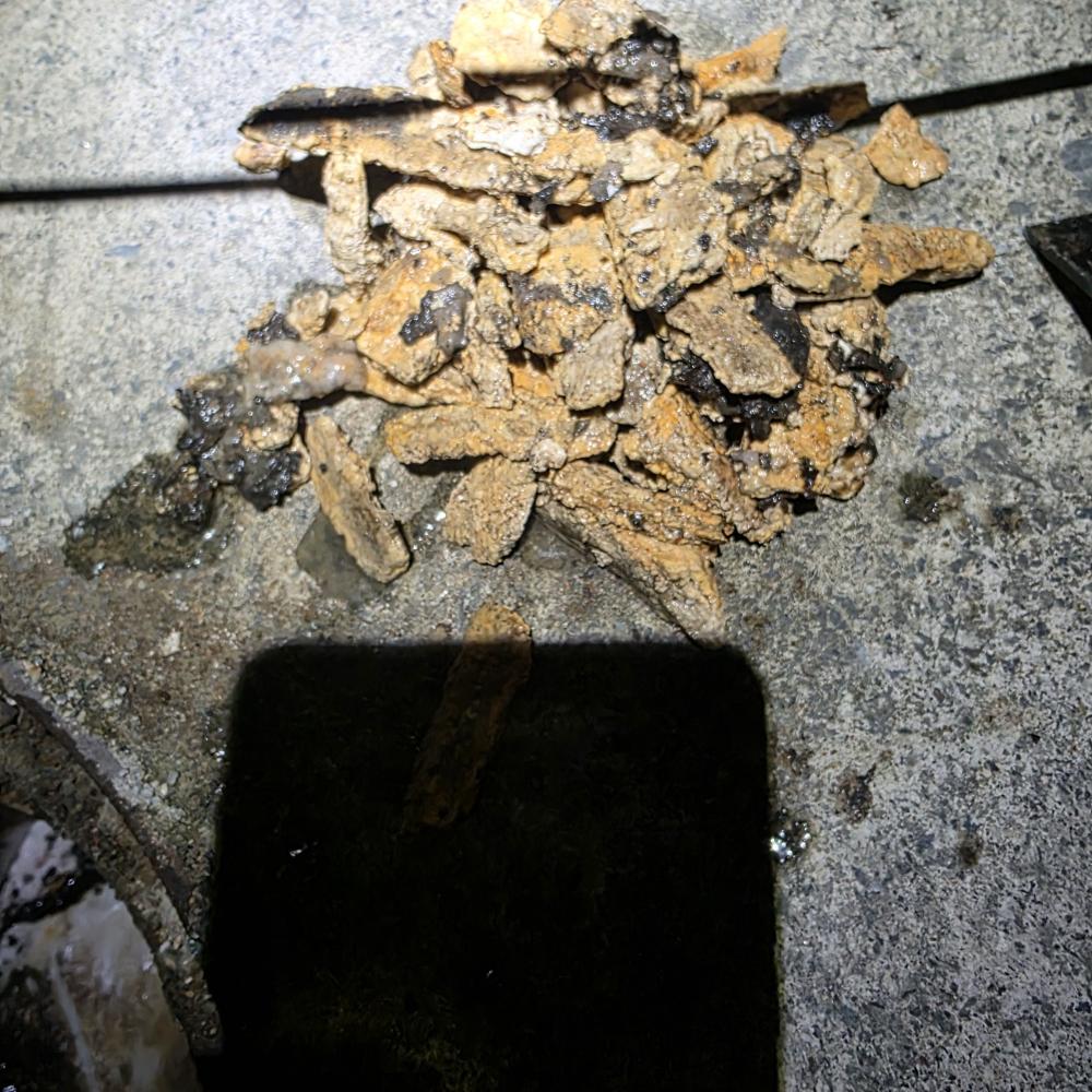 유지분의 덩어리가 응고가되어 메인배관 쪽에서 막혀있던걸