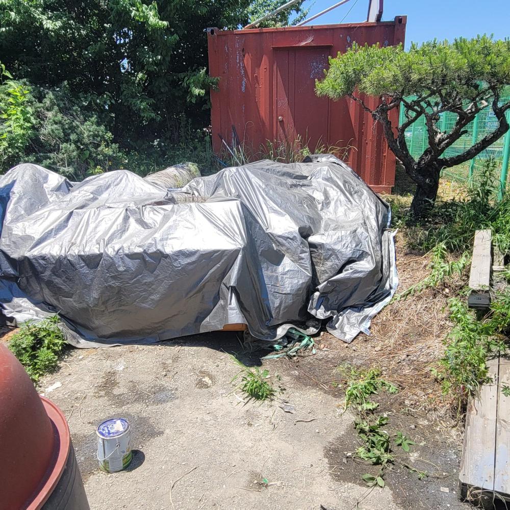 처음에는 1톤 차량 한 대면 충분할 줄 알았는데, 천막을 걷어보니 숨겨져 있던 페일통과 폐기물들이 더 나오면서 결국 1톤 차량 두 대 분량으로 작업을 진행했습니다.