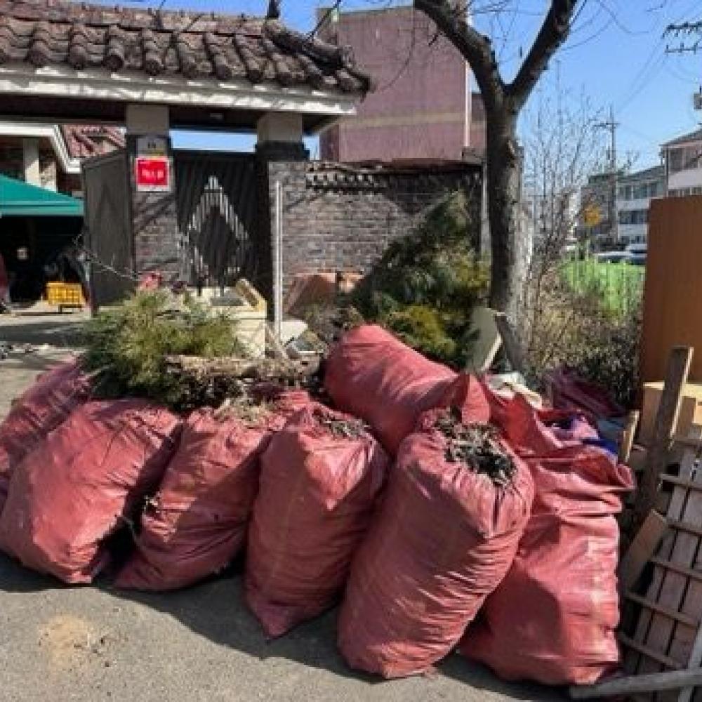 가지치기를 하고 나온 폐목 및 폐가구 수거작업입니다.
