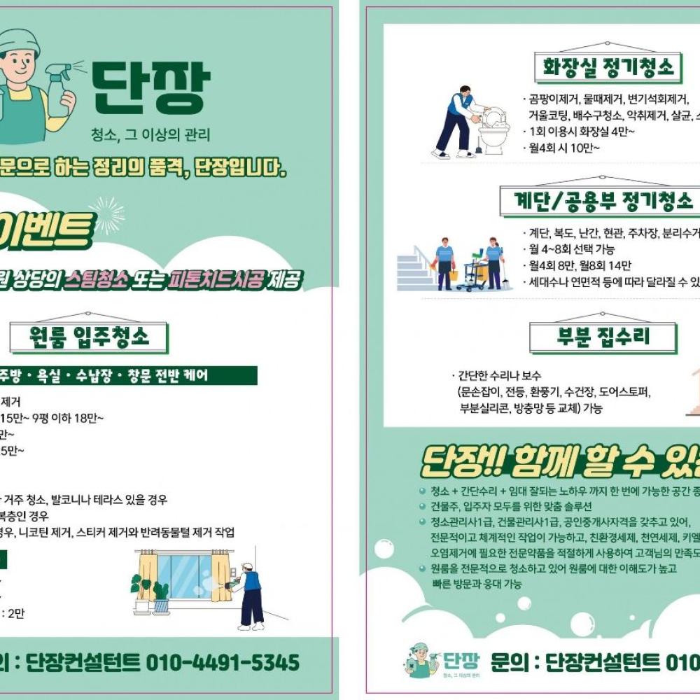 안녕하세요 고덕동1792-1 단장입니다 단장은 원룸과 상가청소관리를 주력으로 하고 있습니다