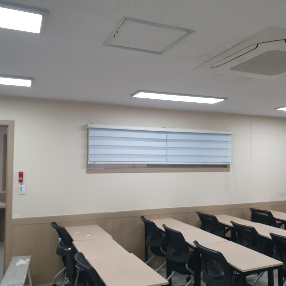 이번 작업은 학원 내부 벽면도배 강의실 6개와 복도 전체를 그레이 광폭합지로 깔끔하게 시공한 현장입니다. 학생들이 매일 드나드는 공간인 만큼, 어느 곳보다도 밝고 편안한 분위기, 그리고 관리의 편리함이 중요했습니다. 그래서 마감재는 내구성 좋고 오염에 강한 광폭합지으로 결정했습니다.소방법에 의해 합지 아니면 방염실크벽지로 도배를 해야 된답니다. 일반실크벽지 ×