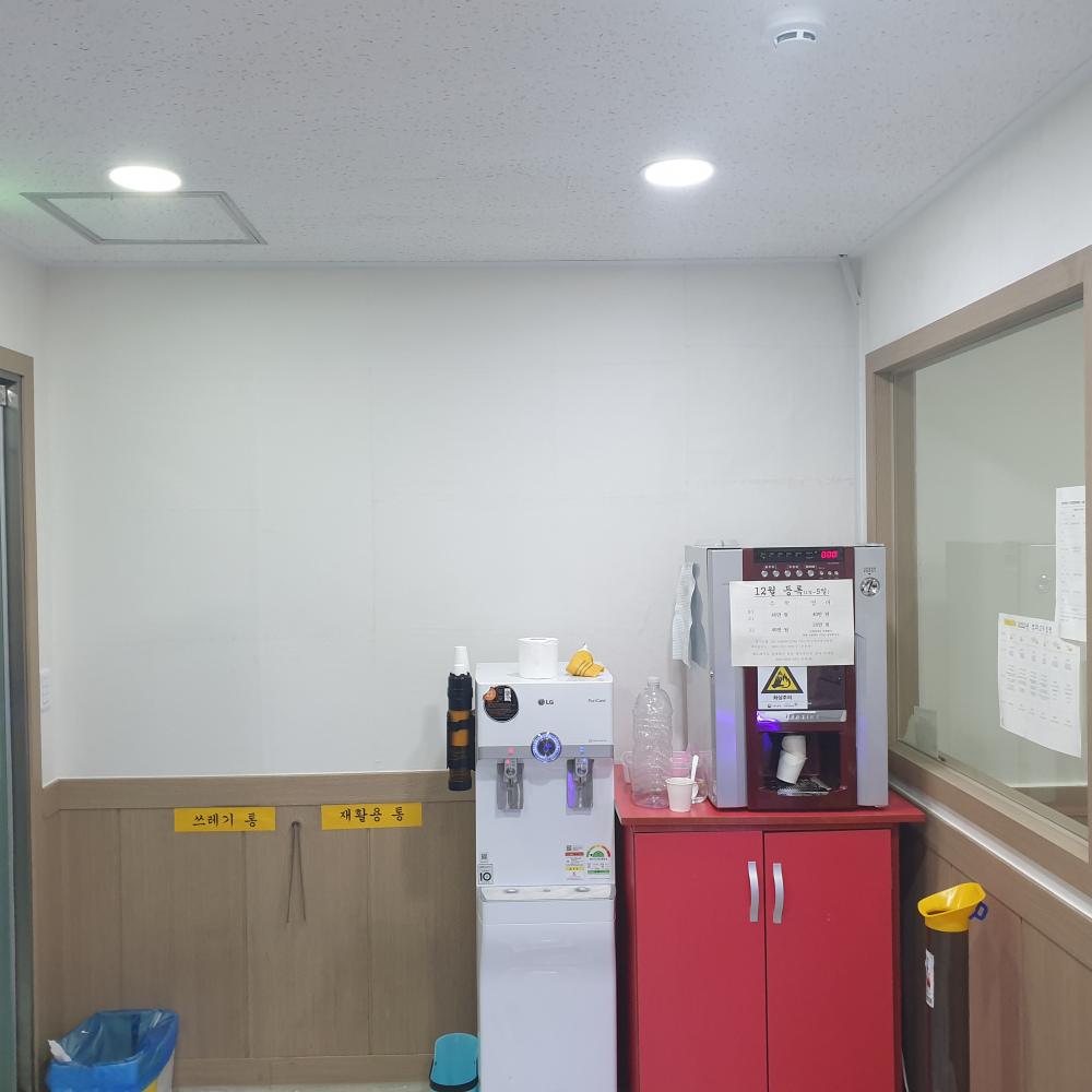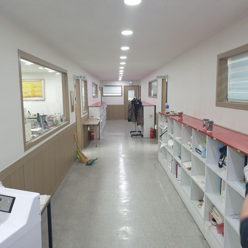복도는 학생들의 이동이 잦아 스크래치와 오염이 심했는데, 광폭합지 시공 후 전체 분위기가 확 바뀌었습니다.
