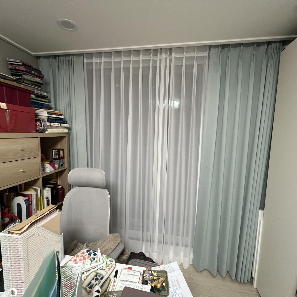 민트색 암막커튼으로 방의 분위기도 한결 업그레이드!