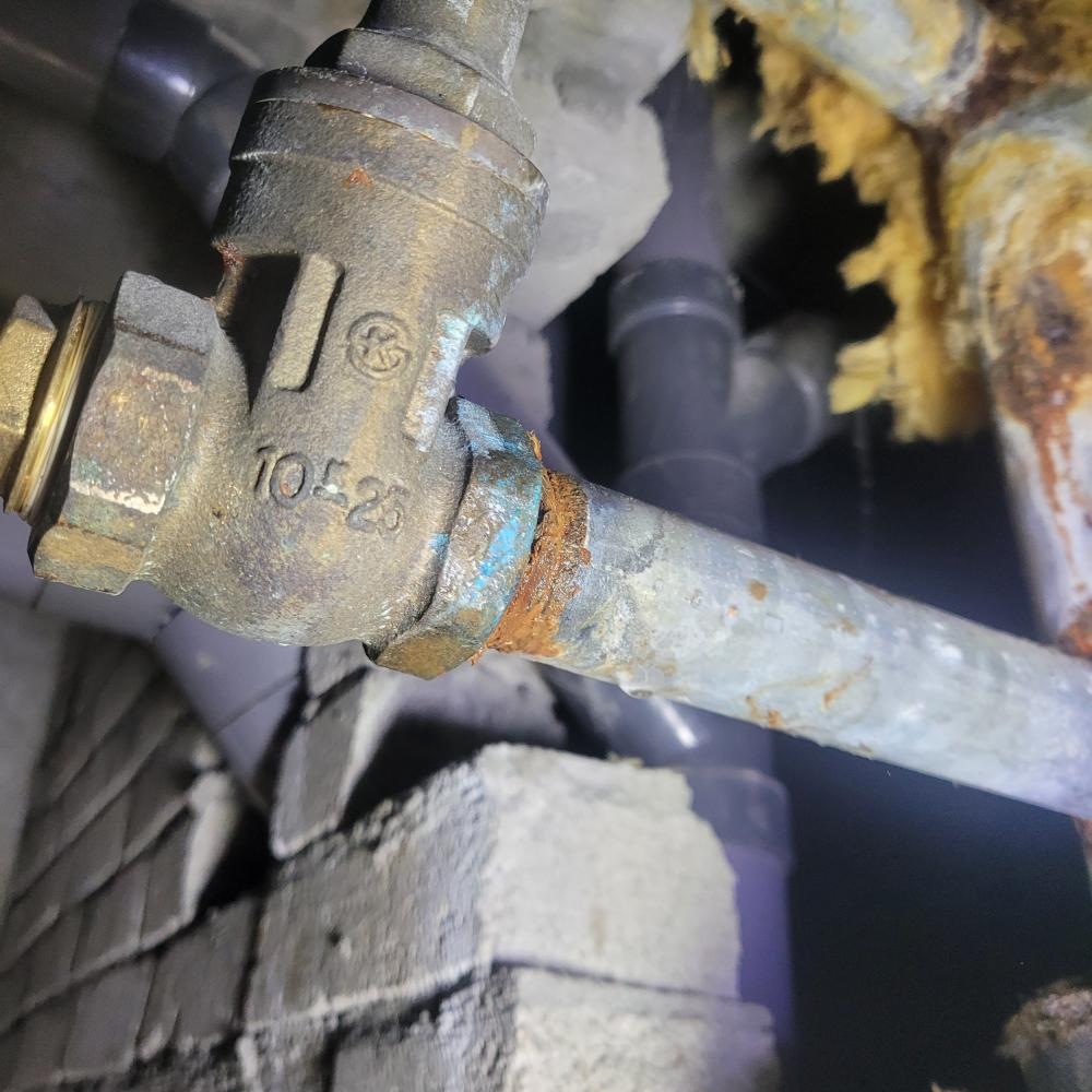 상가 공용 화장실 천장 수도배관 게이트밸브 누수로 인해