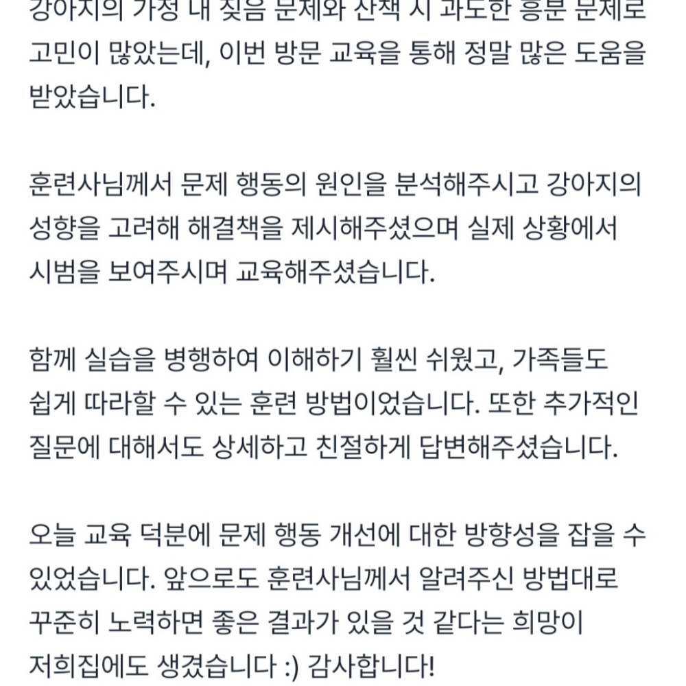 산책 시 문제 행동 교정 및 기초 예절 교육.